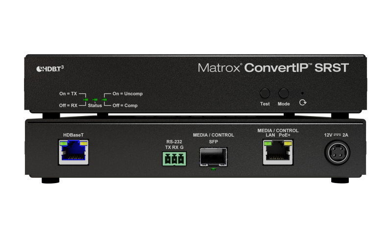 For businesses and organizations outfitted with HDBaseT installations, moving to new infrastructure can be complicated and costly. Matrox ConvertIP SRST transmitter/receiver device now enables you to scale existing HDBaseT network infrastructure—by integrating HDBaseT content into and from the IP network—without the additional cost of upgrading your current equipment or infrastructure. Based on open standards, ConvertIP SRST is also compatible with a SMPTE ST 2110 network.